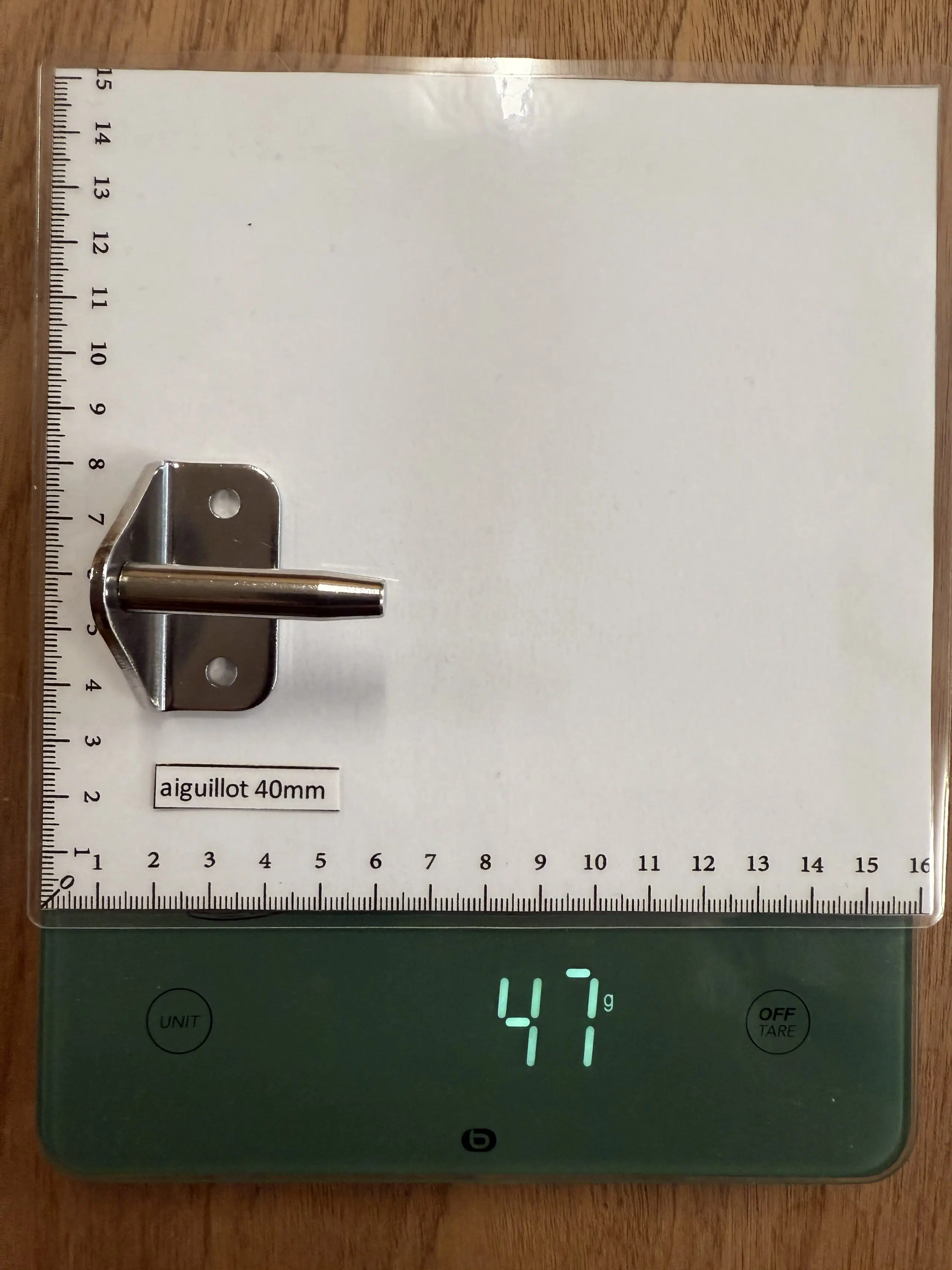 40 mm Nadel aus Metall mit 2-Loch-Befestigungsplatte. Ein starkes Stück, das einfach zu montieren ist und sich für die üblichen Beschlags- und Verbindungsbedürfnisse eignet.