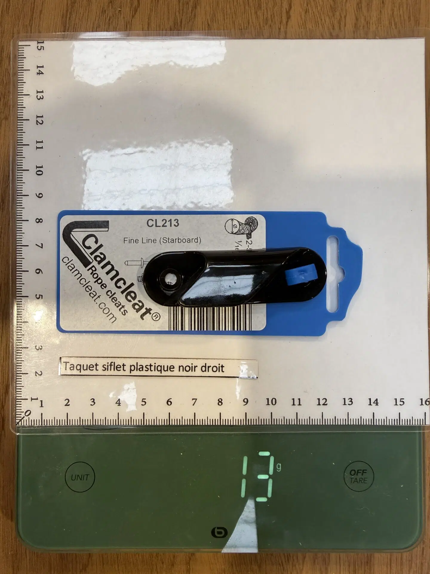 Klampe und Decksbeschläge von Atelier des Gazelles, ideal zum Festmachen der Enden und zum Einstellen an Bord. Kompatibel mit Morgat 320.