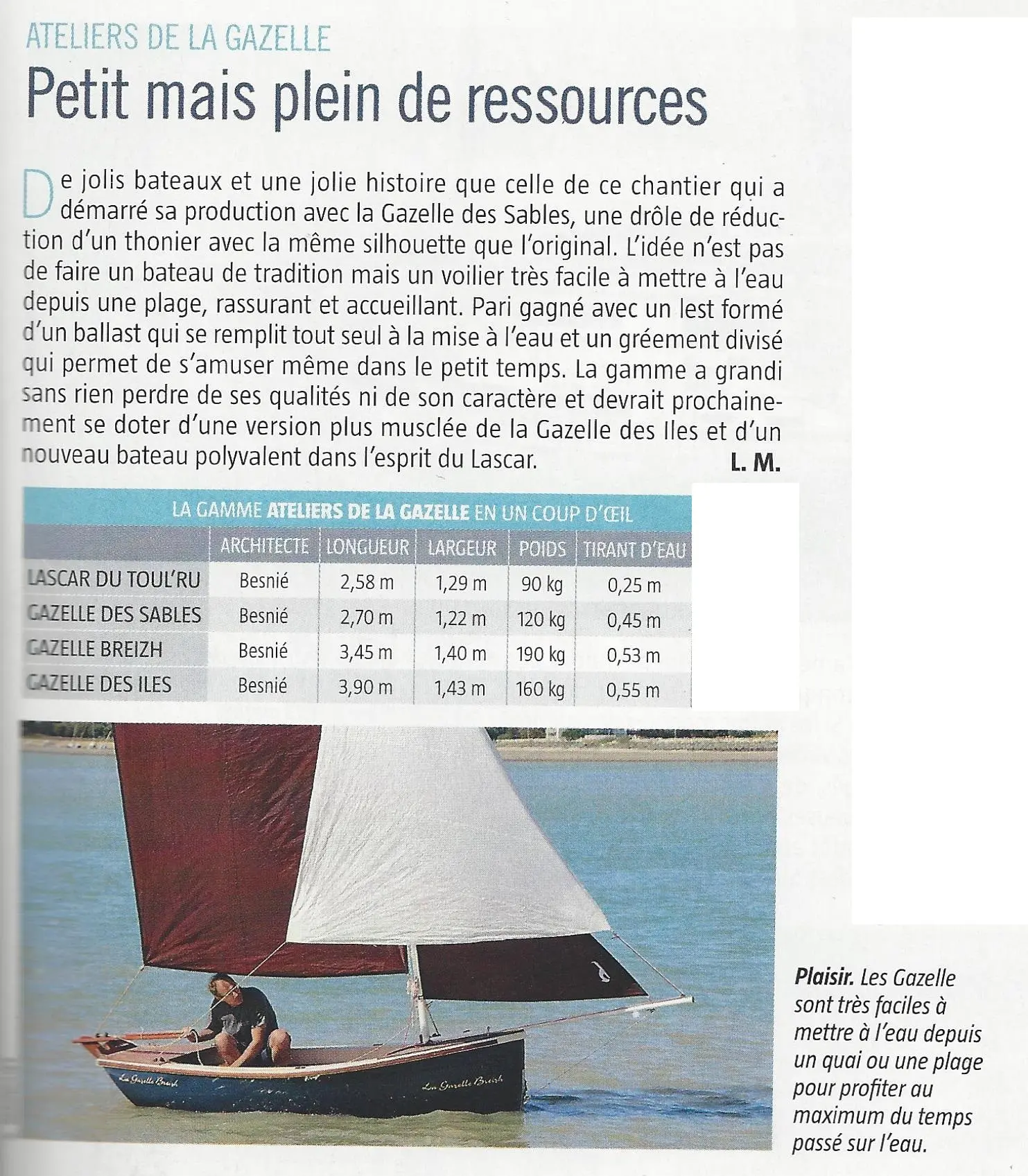 Sélectionnés par la presse nautique les petits bateaux transportables des Ateliers de La Gazelle des Sables sont mis à l’honneur avec un nouvel article  de   Voiles & Voiliers.